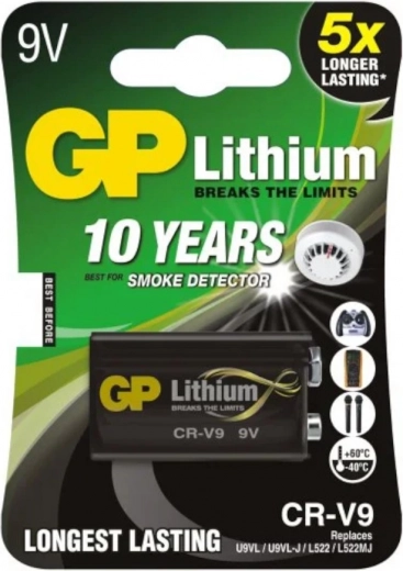 Baterie GP Lithium 9V to idealny wybór dla urządzeń wymagających stabilnej i długotrwałej wydajności. Typowo są to domowe urządzenia, takie jak czujniki dymu, które z tymi bateriami pozostają aktywne nawet przez dziesięć lat, jeśli są używane razem z baterią zapasową. To dwukrotnie dłużej w porównaniu ze zwykłymi bateriami alkalicznymi.