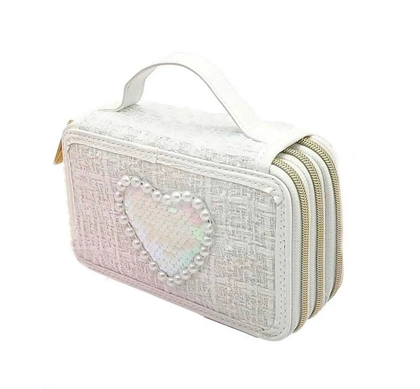 Stylowy piórnik Girabrilla w trzystopniowym wykonaniu został zaprojektowany z modnej tweedowej tkaniny. Białe perłowe zdobienie oraz błyszczące serduszko nadają unikalny wygląd każdej uczennicy, która lubi łączyć modę z praktycznością.