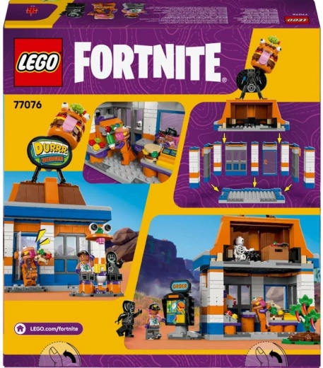 LEGO Fortnite Restauracja Durrr Burger to kreatywny zestaw konstrukcyjny dla dzieci od 10 lat, który przenosi ikoniczne miejsce z gry FORTNITE do prawdziwego świata. Modularna konstrukcja, bogate akcesoria, cztery minifigurki oraz bonusowy strój w grze po zeskanowaniu kodu QR zapewnią godziny zabawy i wyobraźni.