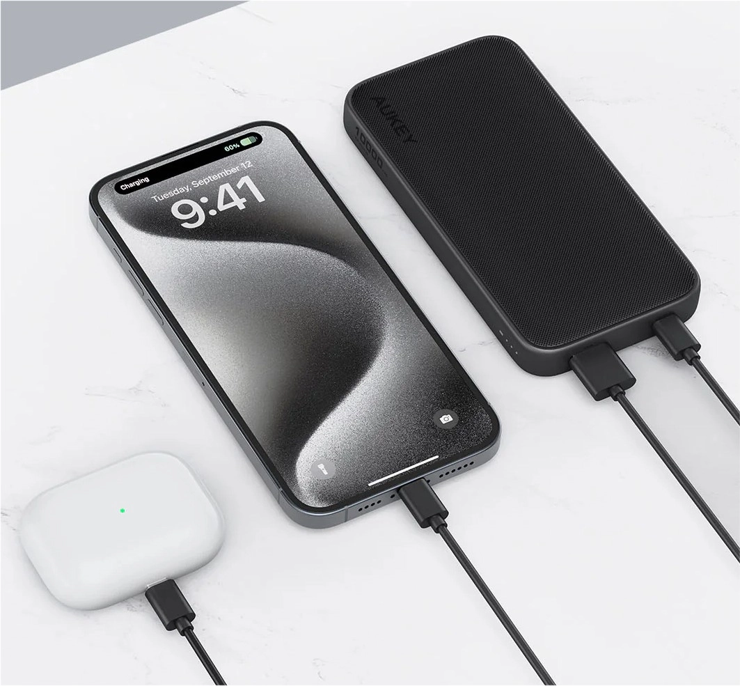 Powerbanka Aukey Spark Go 10000mAh oferuje szybkie ładowanie oraz możliwość ładowania dwóch urządzeń jednocześnie dzięki dwóm wyjściom USB-A i USB-C. Dzięki dużej pojemności jest idealna w podróży.