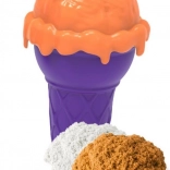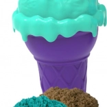 Kinetyczny piasek oferuje magiczną płynną strukturę, która jest wyjątkowo dobrze formowalna i skleja się ze sobą, co znacznie ułatwia kształtowanie. Ten zestaw do zabawy zmienia klasyczną grę w produkcję i sprzedaż lodów w nowy wymiar dzięki pachnącej piaskowej zawartości. Każde opakowanie zawiera dwa kolory piasku, które nie tylko stymulują wyobraźnię, ale również pachną zgodnie z kolorem.
