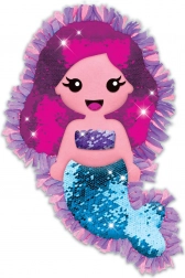 Stwórz magiczną poduszeczkę w kształcie syrenki bez igły – wystarczy wiązać supełki. Wszystkie elementy są wstępnie wycięte i gotowe do dekorowania, w tym dwustronne cekiny/flip cekiny, które zmieniają kolor po przejechaniu dłonią. Łatwy projekt DIY z prostą instrukcją jest idealny dla dzieci od 6 lat i rozwija kreatywność oraz małą motorykę.