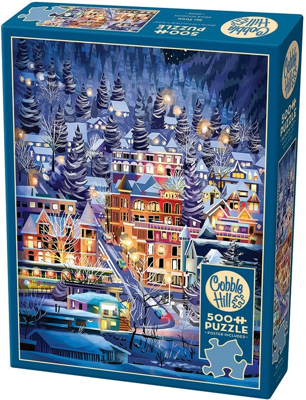 Puzzle COBBLE HILL Narciarskie miasteczko oferują wyzwanie dla prawdziwych pasjonatów. Dzięki pomysłowemu wzornictwu elementów, które nie podążają za standardową siatką, czeka Cię unikalne układanie.