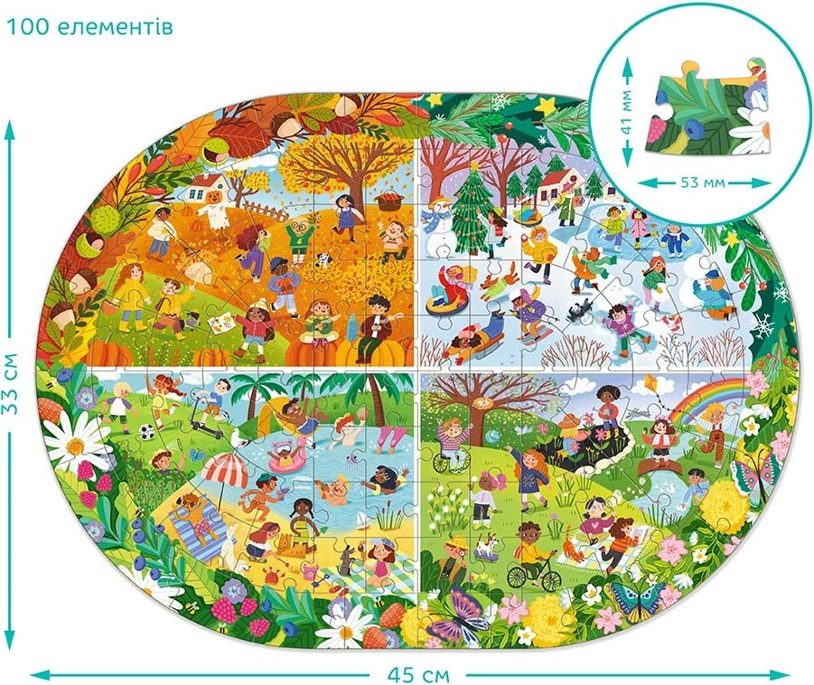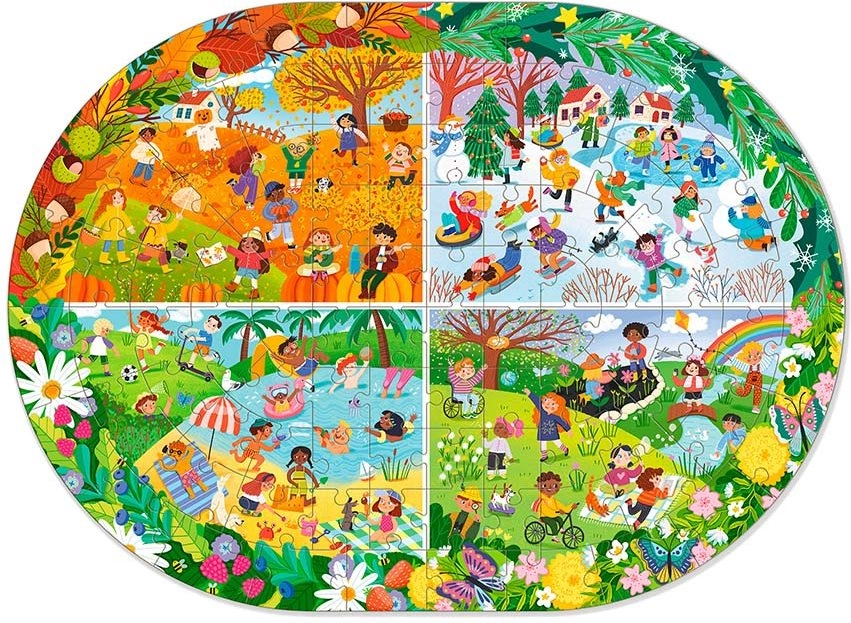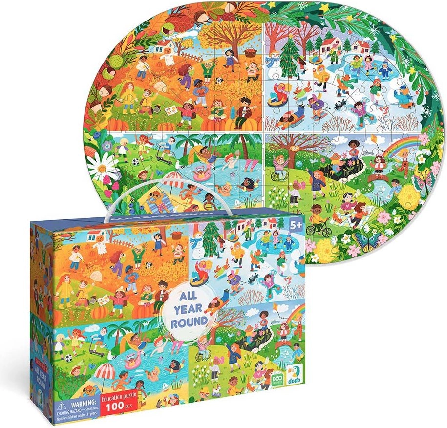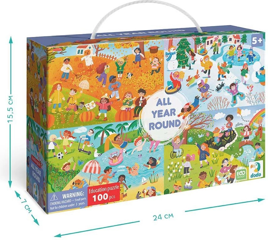 Puzzle DODO – Przez cały rok to idealny prezent dla każdego miłośnika układanek. Te puzzle zawierają 100 elementów przedstawiających kolorowy i szczegółowy obraz poszczególnych pór roku. Ułożone puzzle mają wymiary 45 x 33 cm, co jest perfekcyjnym rozmiarem do oprawienia i wyeksponowania.