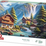 Zanurz się w świecie drewnianej wioski z tym unikalnym puzzlem o 260 elementach. Po złożeniu uzyskasz obraz pięknej wioski, który wprowadzi spokój i harmonię do Twojego domu.