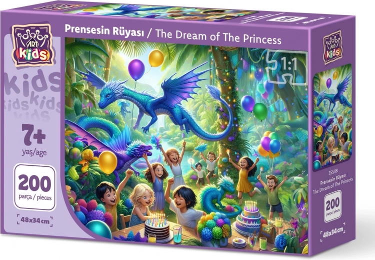 Piękne puzzle Księżniczki sen z 200 elementami i wymiarami 48 x 34 cm — doskonałe dla zabawy i relaksu.