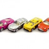 Samochodziki są dostępne w miksie różnych kolorów i modeli, co wspiera kreatywną zabawę i rozwijanie kolekcji. Solidne metalowe nadwozie zapewnia wyższą trwałość podczas zabawy i długą żywotność.
