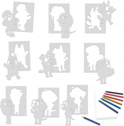 Ten zestaw zawiera 9 tekturowych paneli z postaciami, kolorowanki oraz 6 kolorowych kredek woskowych – wszystko, co potrzebne do zabawnej i edukacyjnej aktywności.