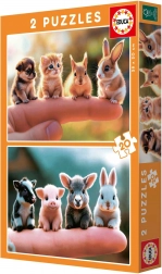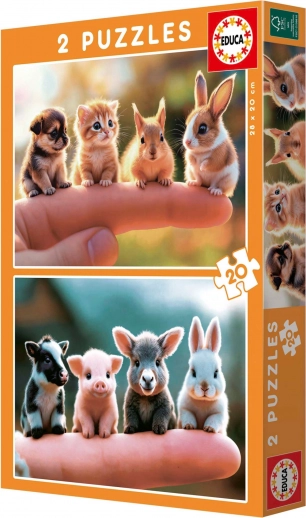 Educa Puzzle Małe zwierzątka zapewniają zabawę i twórcze wyzwanie dla małych dzieci. Zestaw zawiera dwie układanki, każda o wymiarach 28 x 20 cm.