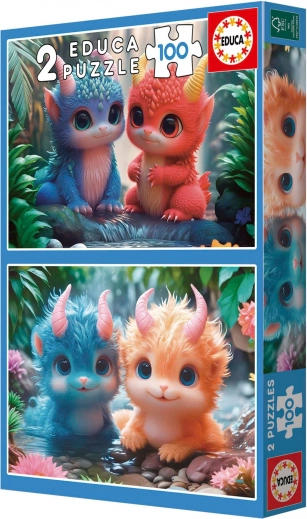 Educa Puzzle Urocze potworki oferują zabawę w postaci dwóch układanek, każda o 100 elementach i wymiarach 40 x 28 cm.