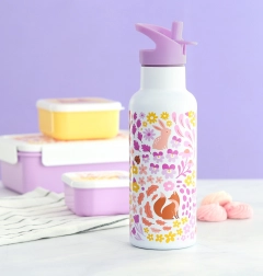 Ta praktyczna stalowa butelka o pojemności 500 ml z motywem kwiatowego ogrodu jest idealna dla dzieci do przedszkola lub na wycieczki. Utrzymuje napoje długo zimne lub ciepłe dzięki podwójnej ściance i jest wyposażona w ustnik oraz słomkę dla wygodnego picia.