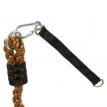 Nie trzeba mieć parku linowego, aby zapewnić dzieciom przygodę. Wystarczy drzewo lub konstrukcja ogrodowa, a montaż liny zajmie chwilę. Karabinek i taśma mocująca są w zestawie, dzięki uniwersalnemu systemowi lina może być zawieszona w dowolnym miejscu: na drabinie, domku, gałęzi czy belkach.
