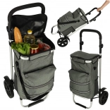 Wózek ma pojemne wnętrze o objętości 40 litrów i jest wyposażony w kieszeń termoizolacyjną do przechowywania produktów chłodzonych. Dzięki ergonomicznemu uchwytowi i dużym kółkom wózek jest łatwy w prowadzeniu.