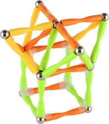 Silne magnesy w plastikowych patyczkach oraz metalowe kulki umożliwiają tworzenie solidnych i wysokich konstrukcji – od wież po mosty.