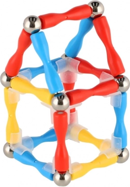 Kolorowe plastikowe patyczki z magnetycznymi końcówkami oraz metalowe kuleczki zapewniają szybkie i trwałe łączenie w wiele kształtów. Dzieci w zabawny sposób poznają zasady konstrukcji i stabilności.