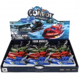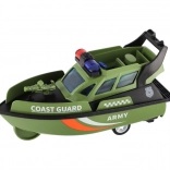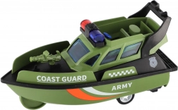 Wyrusz na przygodę z tą łodzią ratunkową wykonaną z wysokiej jakości plastiku! Model o długości 14 cm jest zaprojektowany tak, aby po naciągnięciu dzięki mechanizmowi bezwładnościowemu bez potrzeby baterii ruszał do przodu.