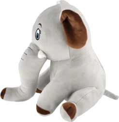 Uroczy siedzący słoń z mięciutkim futerkiem i dużymi uszami jest idealny do przytulania, zabawy oraz jako dekoracja do pokoju dziecięcego.