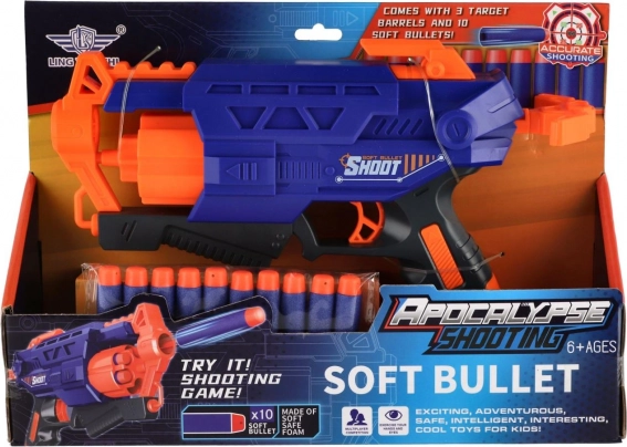 W zestawie znajduje się 10 piankowych nabojów oraz pistolet o długości 28 cm, który łatwo leży nawet w małych dłoniach.