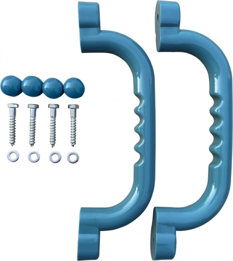 Te turkusowe plastikowe uchwyty są zaprojektowane, aby zapewnić bezpieczeństwo i stabilność na placach zabaw dla dzieci. Wykonane są z wytrzymałego i trwałego materiału o nośności do 70 kg, co gwarantuje niezawodność i długotrwałe użytkowanie. Materiały montażowe są dołączone do opakowania, co ułatwia instalację: