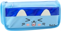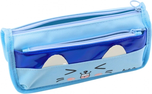 Piórnik oferuje dwie praktyczne kieszenie na zamek: główną komorę o dużej pojemności, idealną do przechowywania długopisów, ołówków i innych artykułów piśmienniczych, oraz mniejszą przednią kieszeń na drobiazgi, takie jak gumki czy temperówki. Uroczy motyw kotka z uśmiechem i uszkami nadaje całemu piórnikowi charakter i dziecięcy urok.