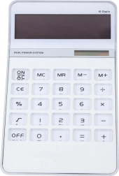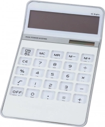 Nowoczesny kalkulator biurowy w eleganckiej białej obudowie łączy estetykę i funkcjonalność. Jego minimalistyczny design oraz wyraźnie oznaczone przyciski sprawiają, że doskonale prezentuje się na każdym biurku – w biurze, w domu lub w przestrzeniach edukacyjnych.