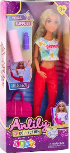 Lalka Anlily z ruchomymi kończynami, akcesoriami do jogi i stylowym ubraniem, idealna do inspirujących zabaw w odgrywanie ról.