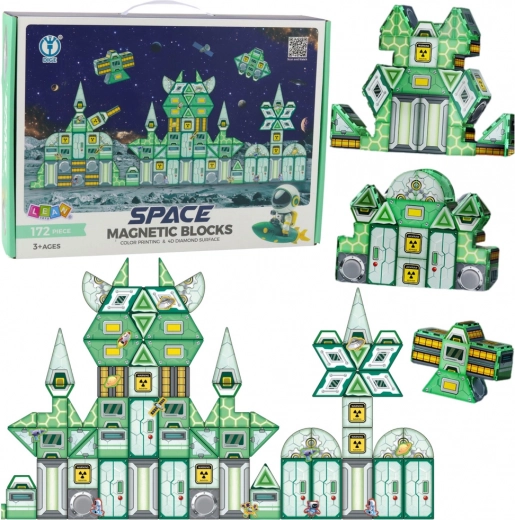 Magnetyczne klocki Kosmos umożliwiają dzieciom kreatywną zabawę inspirowaną tematyką kosmosu. Dzięki nowoczesnemu designowi i kolorystyce, wraz z elementami graficznymi, każda układanka jest wyjątkowa. Zestaw zawiera aż 172 różne elementy, w tym trójkąty, kwadraty, romby, panele 3D i dekoracyjne płytki z grafiką.