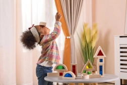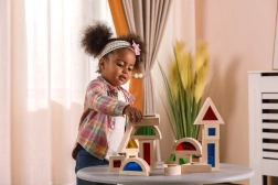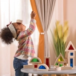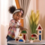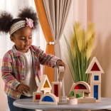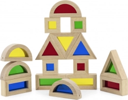 Ten zestaw 16 starannie wykonanych drewnianych klocków z kolorowymi, przezroczystymi wypełnieniami oferuje nieskończone możliwości budowania, sortowania i odkrywania światła oraz kolorów. Dzieci mogą tworzyć wieże, domki czy mosty, jednocześnie rozwijając percepcję przestrzenną i logiczne myślenie.