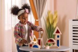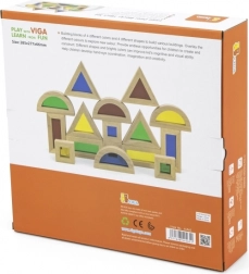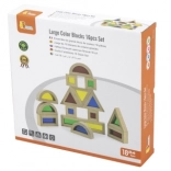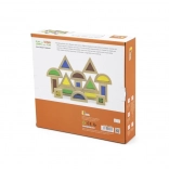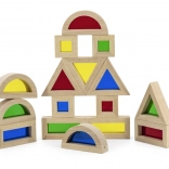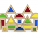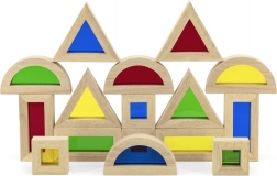 Trójkąty, kwadraty, prostokąty i półkola wspierają wyobraźnię przestrzenną oraz stabilne konstrukcje podczas warstwowania i układania.