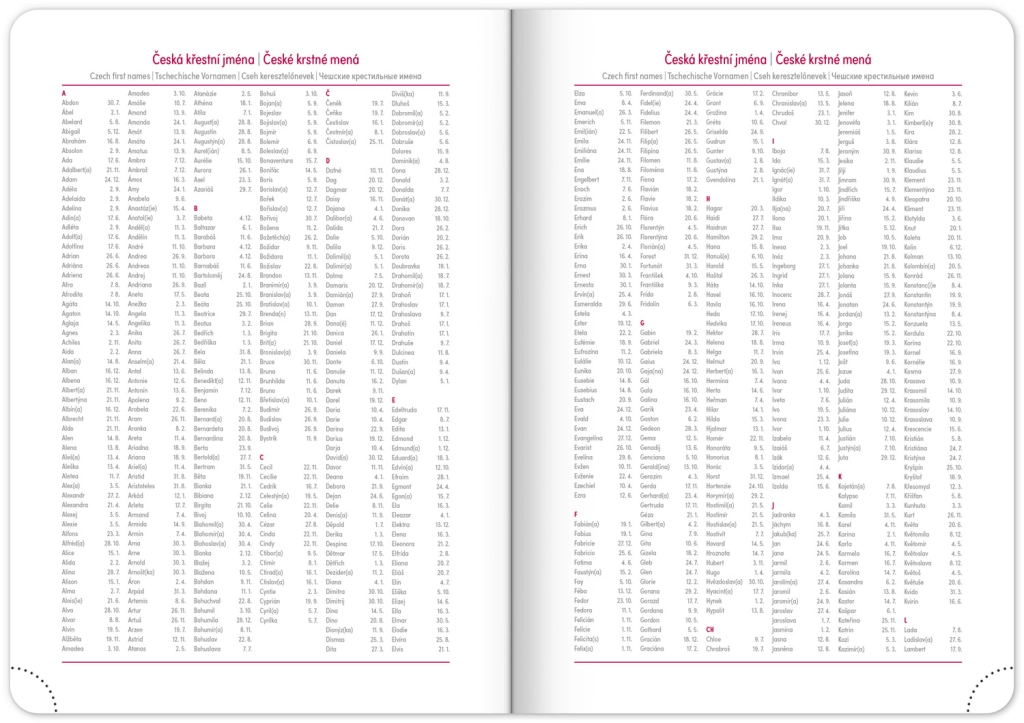 - Czesko‑słowackie kalendarium, dodatkowo angielski, niemiecki, węgierski i rosyjski