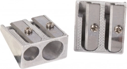 Wytrzymała metalowa temperówka idealna do użytku szkolnego i biurowego. Dzięki podwójnemu otworowi możesz temperować zarówno cienkie, jak i grubsze kredki oraz ołówki.