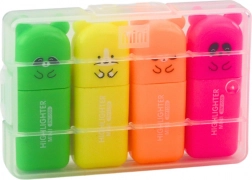 Zdobądź zestaw czterech różnokolorowych zakreślaczy, które świetnie sprawdzą się do nauki i kreatywnej zabawy. Plastikowe etui ułatwia ich przechowywanie i chroni przed zgubieniem. Te zakreślacze, dzięki przyjaznemu wzornictwu i solidnemu wykonaniu, staną się niezbędną częścią szkolnych plecaków, domowych biur oraz zestawów prezentowych dla najmłodszych.