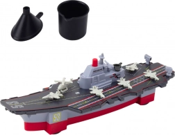Wojskowy okręt z funkcją przepływu wody idealnie nadaje się do zabawy w domu. Dzieci pokochają mechaniczny napęd, który umożliwia gładki ruch. Specjalną cechą tej zabawki jest efekt przepływu wody, aktywowany po napełnieniu wbudowanego zbiornika na wodę.