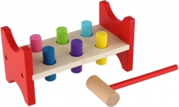 Ta ponadczasowa drewniana zabawka wspiera naturalną naukę poprzez zabawę. Dzieci za pomocą młotka wbijają kolorowe kołeczki w otwory, ćwicząc precyzję ruchu, rytm i cierpliwość. Solidna drewniana ławeczka w połączeniu z bezpiecznie zaokrąglonymi krawędziami zapewnia długą żywotność i bezpieczne użytkowanie.