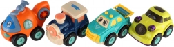 Małe pojazdy, duża zabawa! Plastikowy środek transportu napędzany kołem zamachowym jest idealny dla dzieci, które kochają samochody, autobusy lub maszyny budowlane. Wystarczy cofnąć i puścić - pojazd sam się rozpędzi.