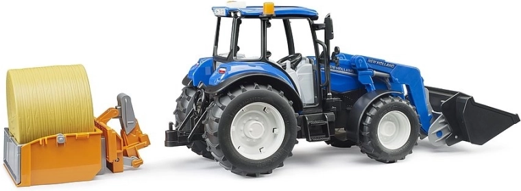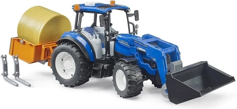 Traktor BRUDER NEW HOLLAND T5.120 to wszechstronny pomocnik rolniczy z precyzyjnym wykonaniem i wytrzymałą konstrukcją. Dzięki funkcjonalnemu ładowaczowi czołowemu, dodatkowym widłom i skrzyni dzieci łatwo załadują, przewiozą i rozładują bele siana oraz inne materiały. Amortyzowane osie i terenowa przednia oś zapewniają stabilną jazdę także poza gładką nawierzchnią.