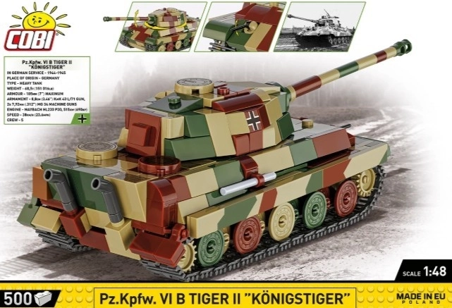 Model Tiger II od COBI to świetny sposób, aby zbudować własną wersję jednego z najsłynniejszych czołgów II wojny światowej. Jego konstrukcja i funkcjonalne elementy czynią go idealnym wyborem zarówno dla początkujących, jak i doświadczonych miłośników budowania z klocków.