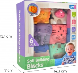 Woopie Klocki sensoryczne są idealne do rozwoju Twojego dziecka. Dzięki różnorodnym kształtom, kolorom i efektom dźwiękowym po naciśnięciu, klocki są świetnym narzędziem do stymulacji rozwoju sensorycznego. Klocki mają wypukłe kształty z wizerunkami zwierzątek i są miękkie, przyjemne w dotyku oraz wydają dźwięki przy ściskaniu, co ucieszy każde dziecko. Służą także jako gryzak i pozwalają dzieciom poznawać świat przyrody.