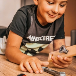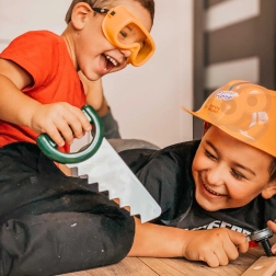 Wiertarka ma efekty świetlne i dźwiękowe i wymaga 3 baterii R6/AA (nie są w zestawie). Ta zabawka rozwija zdolności manualne, logiczne myślenie i kreatywność.
