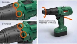 - Bezprzewodowa wiertarka z 3 końcówkami