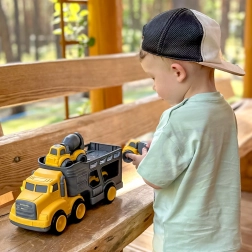 Ten wszechstronny zestaw 4w1 marki WOOPIE przenosi dzieci w świat budowy prosto do pokoju. Duża laweta z odłączaną platformą łatwo przewozi trzy kompaktowe pojazdy, które dzięki ruchomym częściom i napędowi ciernemu w małych autkach wspierają aktywną zabawę oraz rozwój małej i dużej motoryki.
