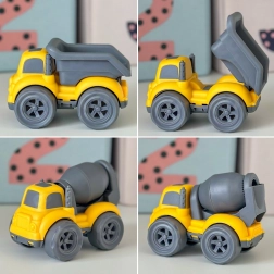 Wywrotka ze składaną skrzynią, betoniarka z obracającym się bębnem oraz śmieciarka dla jeszcze bardziej realistycznych scenariuszy na budowie.