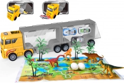 Duża ciężarówka, figurki dinozaurów, auta, sceneria, rozkładana mata