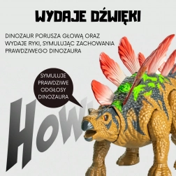 - Dinozaur porusza się do przodu i do tyłu, naśladując ruch prawdziwego stegozaura;