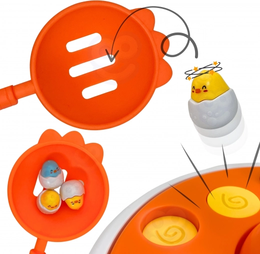 Wystrzel kurczaczka i złap go do łopatki! Dynamiczny element zapewnia pełną akcji zabawę i rozwija refleks oraz umiejętności motoryczne.