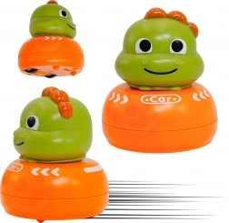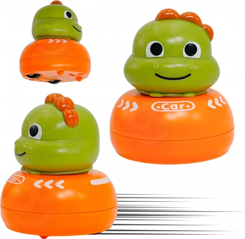 Duży dinozaur służy jako małe autko do kolejnych scenariuszy zabawy. Na spodzie podstawy czeka też gra w kółko i krzyżyk na spokojniejszą, strategiczną rozgrywkę.