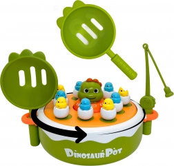 - 4w1: magnetyczne wędkowanie, katapulta + łapanie łopatkami, kółko i krzyżyk, dino–autko