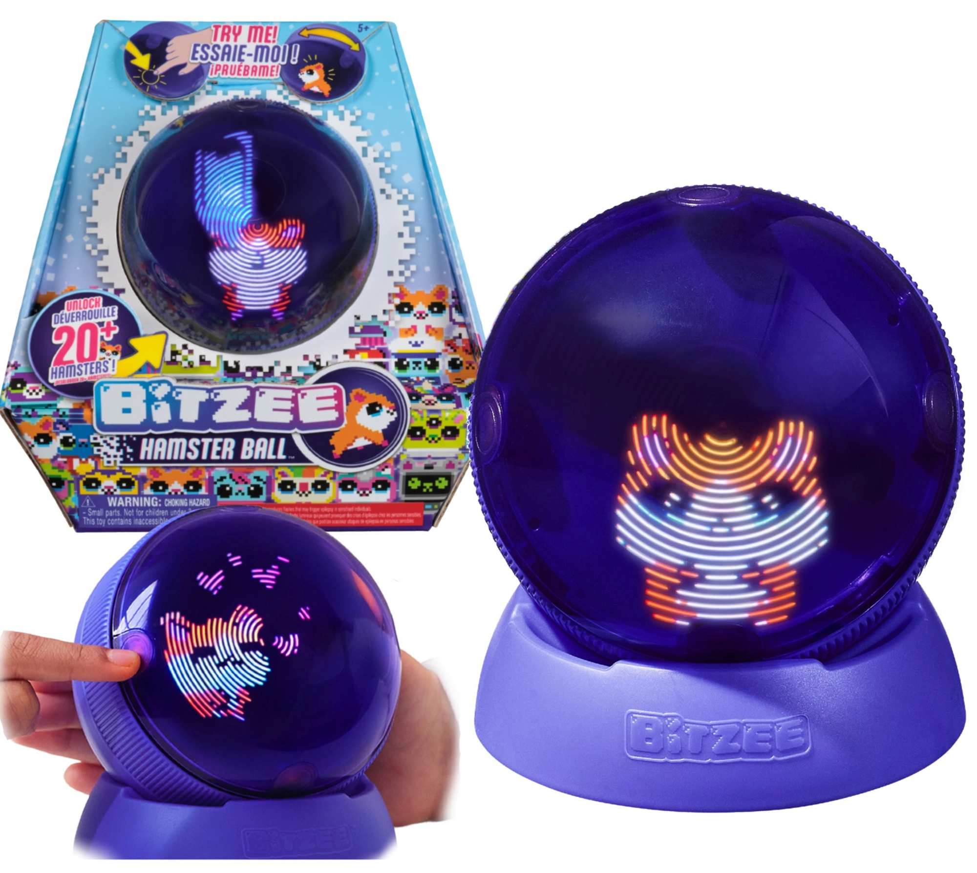 Odkryj nowe podejście do cyfrowego pupila: BITZEE Hamster Ball łączy dotykową interakcję z fascynującymi efektami świetlnymi i uroczymi reakcjami. Chomika możesz karmić, głaskać, kąpać i bawić na kołowrotku – a przy tym obserwować, jak dorasta od malucha do dorosłego bohatera i przemienia się w Super Bitzee. Zabawka działa bez ekranu, dzięki czemu wspiera kreatywność i motorykę małą.