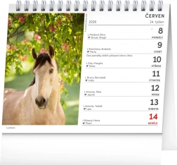 Świętuj imieniny swojego końskiego przyjaciela z praktycznym kalendarzem biurkowym ozdobionym pięknymi fotografiami. Ten kalendarz oferuje imiona koni na każdy dzień oraz miejsce na notatki.