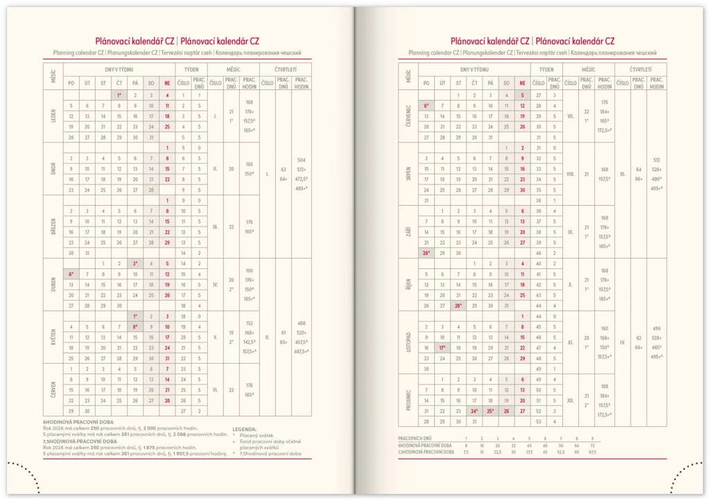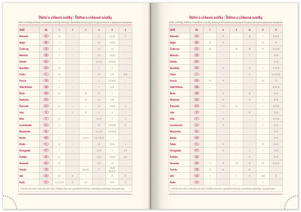 - Pracowniczy kalendarz planistyczny oraz wykaz świąt w Republice Czeskiej i Republice Słowackiej
